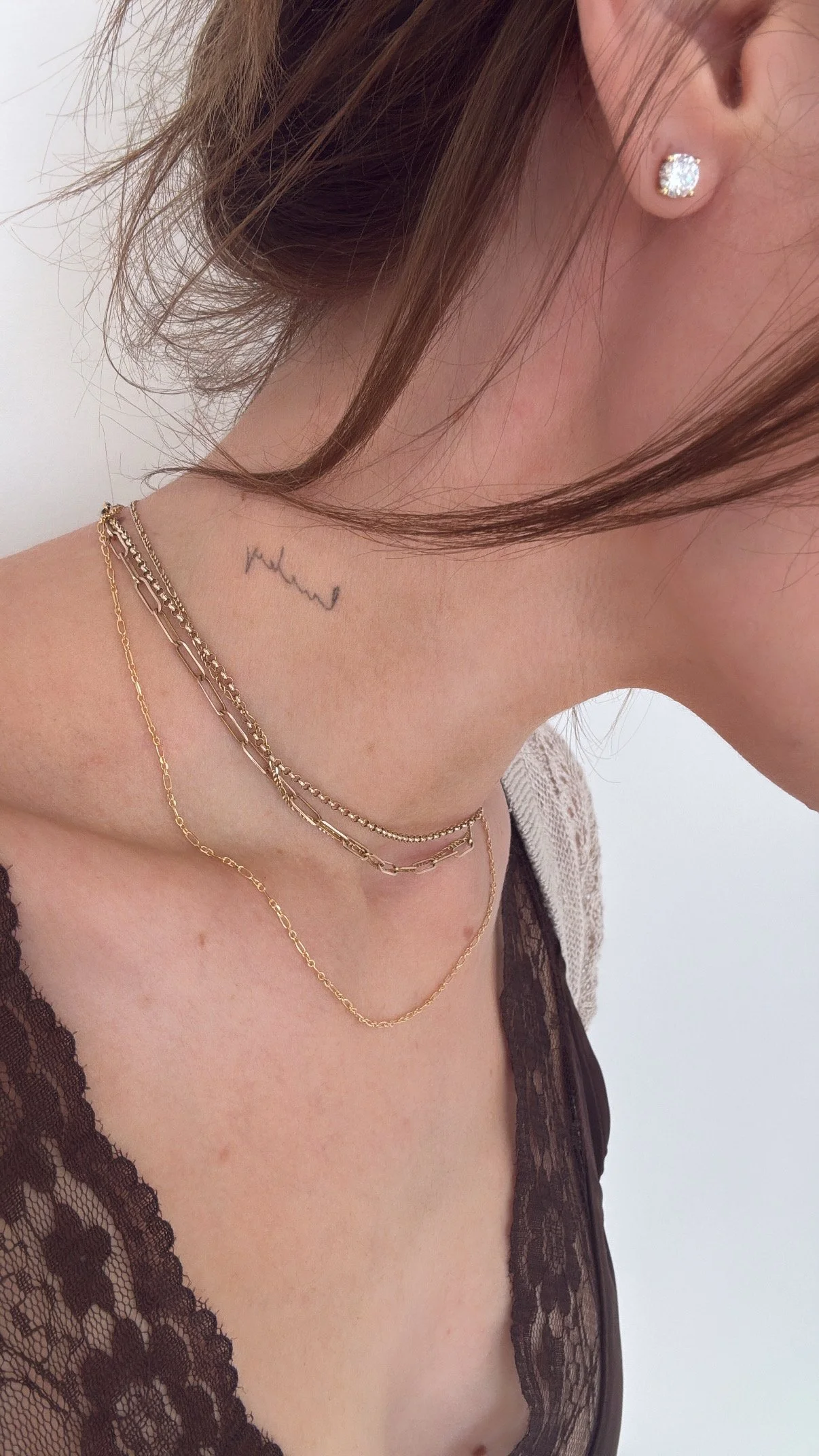 Whether it’s worn on its own for a chic clean-girl aesthetic, or nestled in a creative stack, the light-reflecting links never fail to impress.